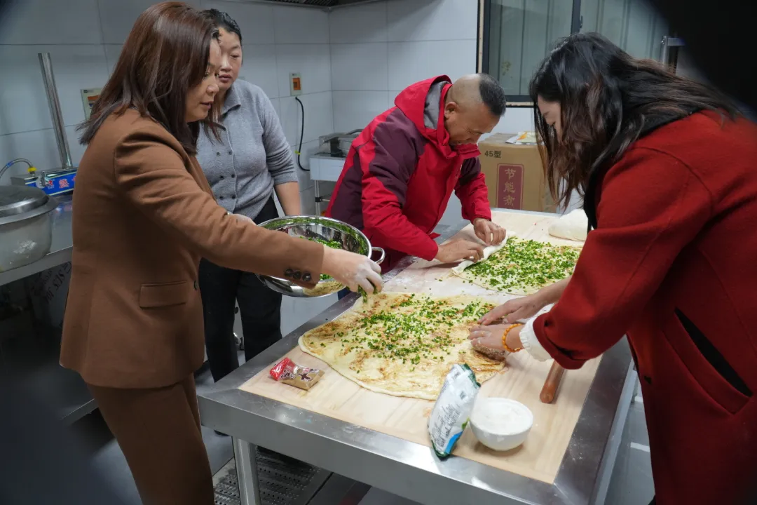 清晨6点30分,天刚蒙蒙亮,副董事长余兴珍已率先抵达共享食堂。她亲手揉面擀面,为员工准备特色面食。指尖翻飞间,筋道的面团承载着“以人为本”的企业初心,这份清晨的坚守,为活动奠定了温暖基调。